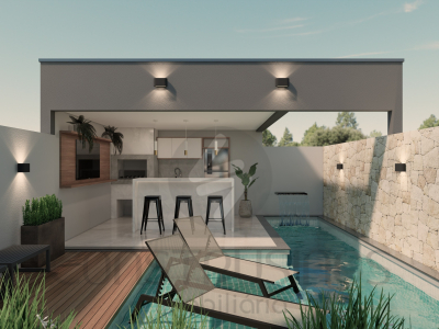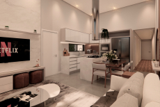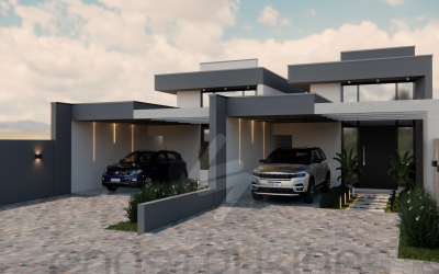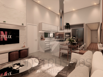 -Água quente; -Espaço Gourmet coberto, com churrasqueira; -Banheiro Social; -Garagem coberta para 1 carro e espaço para mais 2 lado a lado; -Porcelanato na parte social e laminado nos dormitórios; -Forro de gesso em toda casa, exceto garagem; -Aberturas externas em alumínio preto; -Portas internas em laca na cor branca; -Muros, grades e portões (metal/tela expandida); -Reservatório de 1000L de coleta da água da chuva; -Espera para energia foto voltaica; -Espera para split em todos os ambientes; -Espera para persianas automatizadas; -Espera para piscina; -Espera para cerca elétrica; -Espera para carregador de carro elétrico